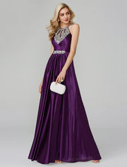 Vestido negro de corte A para fiesta, para invitada de boda, largo hasta el suelo, sin mangas, cuello halter, de seda, sin espalda, con cristales y lentejuelas - Rosa / EE. UU. 2 / Reino Unido 6 / UE 32