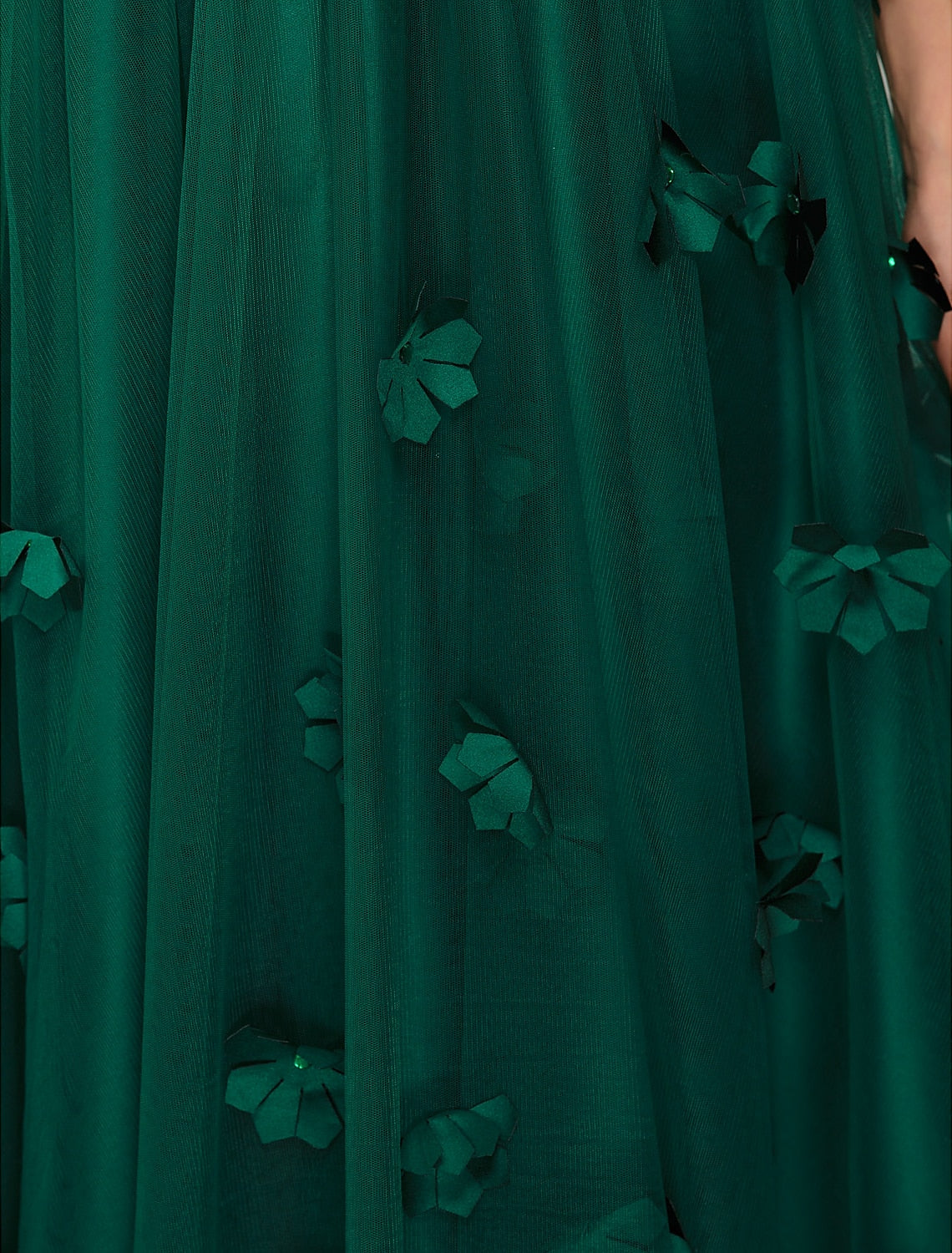 Vestido floral de corte A para invitada de boda, baile de graduación, largo hasta el suelo, manga corta, cuello barco, tul con apliques de cristales - EE. UU. 2 / Reino Unido 6 / UE 32