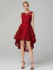 Vestido de fiesta de cóctel con corte A asimétrico, sin mangas, cuello ilusión, tul con apliques - borgoña / EE. UU. 2 / Reino Unido 6 / UE 32