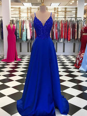 Vestidos de satén con apliques, escote en V, sin mangas y cola larga, corte A/princesa