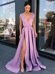 Vestidos de satén con volantes, corte princesa, sin mangas, escote en V y largo hasta el suelo