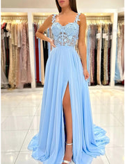 Vestidos de fiesta de corte A, estilo imperio, formales, de cola, sin mangas, con tirantes finos, de gasa, sin espalda y con apliques
