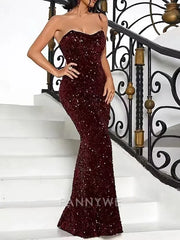 Este vestido de lentejuelas color borgoña es una obra maestra que deslumbra. Su escote palabra de honor y corazón realza los hombros y la clavícula, mientras que su silueta ceñida acentúa las curvas. Cubierto de brillantes lentejuelas, atrapa cada rayo de luz, transformándote en una bola de discoteca andante. La falda estilo sirena se ensancha en la parte inferior, aportando dramatismo y elegancia. Perfecto para eventos de alfombra roja, galas o graduaciones, este vestido irradia confianza y glamour. Conviértete en el centro de atención y deja que las lentejuelas hablen por ti: serás el centro de atención toda la noche.