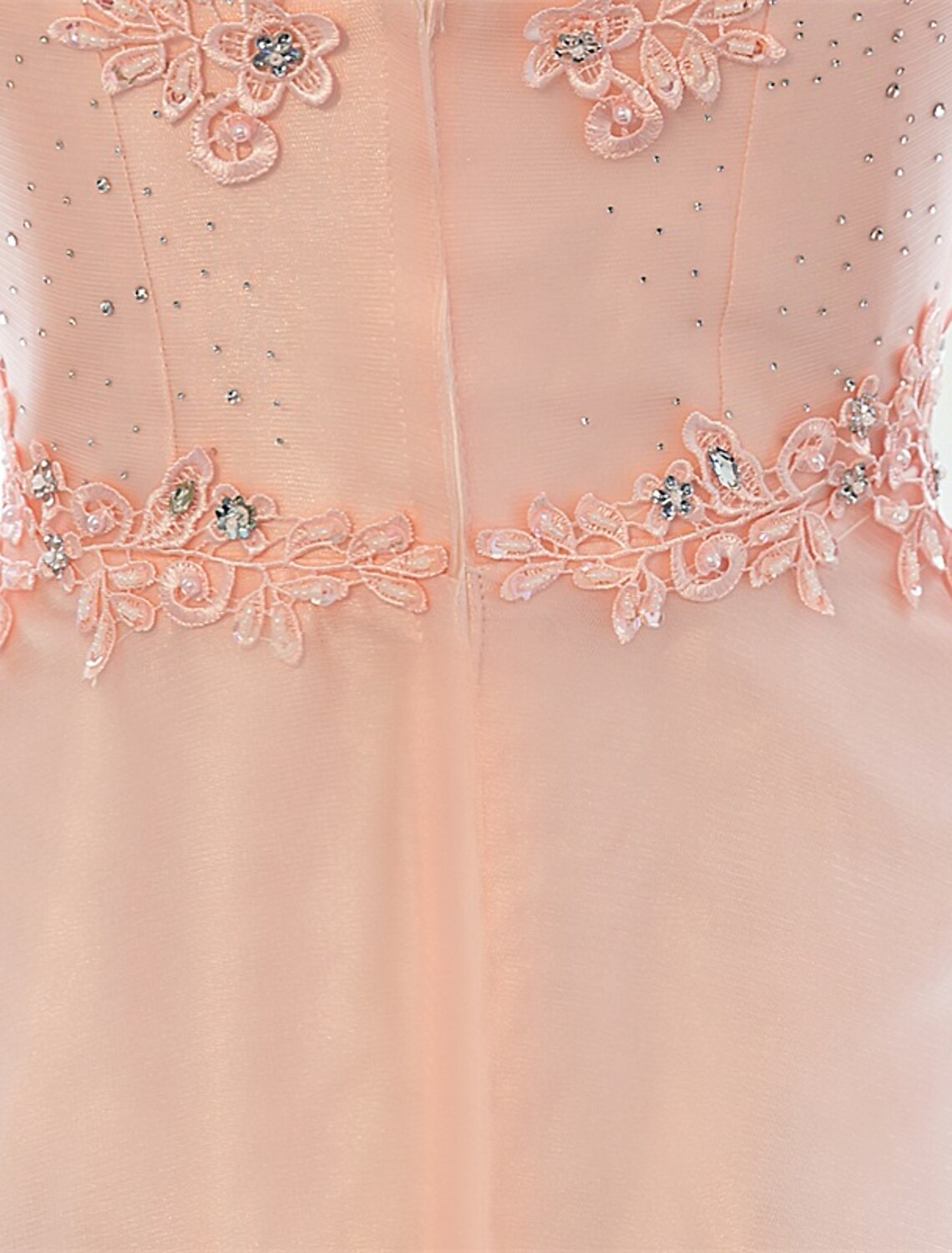 Vestido tubo/columna para invitada de boda, baile de graduación, largo hasta el suelo, sin mangas, cuello ilusión, satén con apliques de cristales