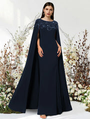 Vestidos de fiesta de corte imperio, corte tubo, corte imperio, para compromiso, cola larga, sin mangas, cuello joya, gasa elástica con cuentas