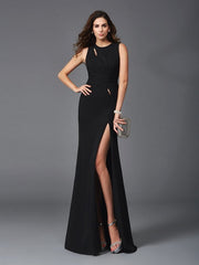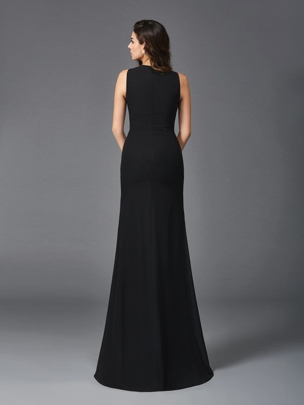 Vestidos largos de gasa sin mangas con escote redondo y cuentas