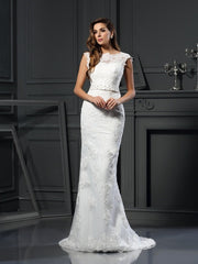 Vestidos de novia largos de satén sin mangas con encaje barco y corte princesa/A