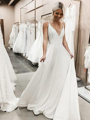 Vestidos de novia de corte A/princesa charmeuse, escote en V, sin mangas, con cola larga