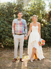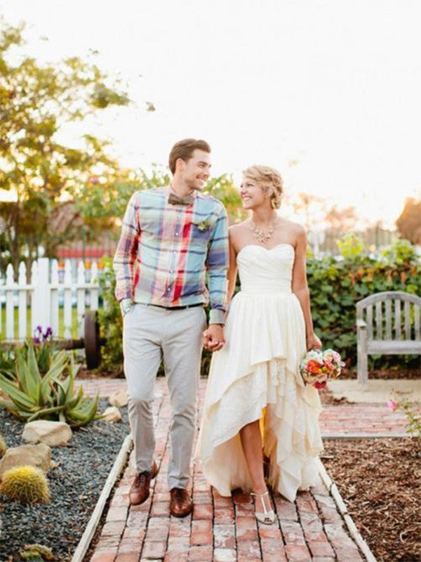 Vestidos de novia asimétricos de corte A/princesa, de gasa, con volantes y escote corazón, sin mangas - EE. UU. 2 / Reino Unido 6 / UE 32