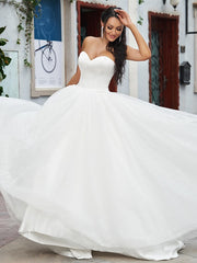 Vestidos de novia de corte A/princesa, con encaje, volantes, escote corazón, sin mangas y cola larga
