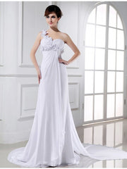 Vestido de novia de gasa sin mangas, corte A/princesa, con un solo hombro, cuentas y flores hechas a mano