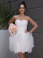 Vestidos de novia cortos/mini de corte A/princesa, de organza, fruncidos, escote corazón, sin mangas