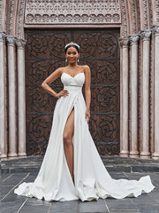 Vestidos de novia de corte A/princesa con volantes de crepé elástico, sin mangas, escote corazón y cola corte