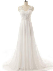 Vestidos de novia de gasa con encaje, corte A/princesa, escote en V, sin mangas, cola larga - EE. UU. 2 / Reino Unido 6 / UE 32
