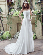 Vestido de novia plisado sin tirantes y corte A