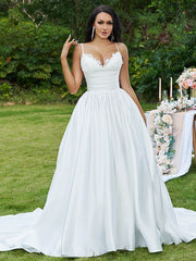 Vestidos de novia de corte en V, sin mangas, con encaje y volantes y cola larga