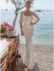 Vestidos de novia casuales de playa con espalda abierta, corte sirena/trompeta, escote cuadrado, sin mangas, cola larga/cepillo, vestidos de novia de satén con botones y abalorios