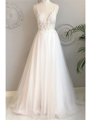 Vestidos de novia de playa, corte A, sin mangas, tirantes, encaje, botones y apliques - EE. UU. 2 / Reino Unido 6 / UE 32