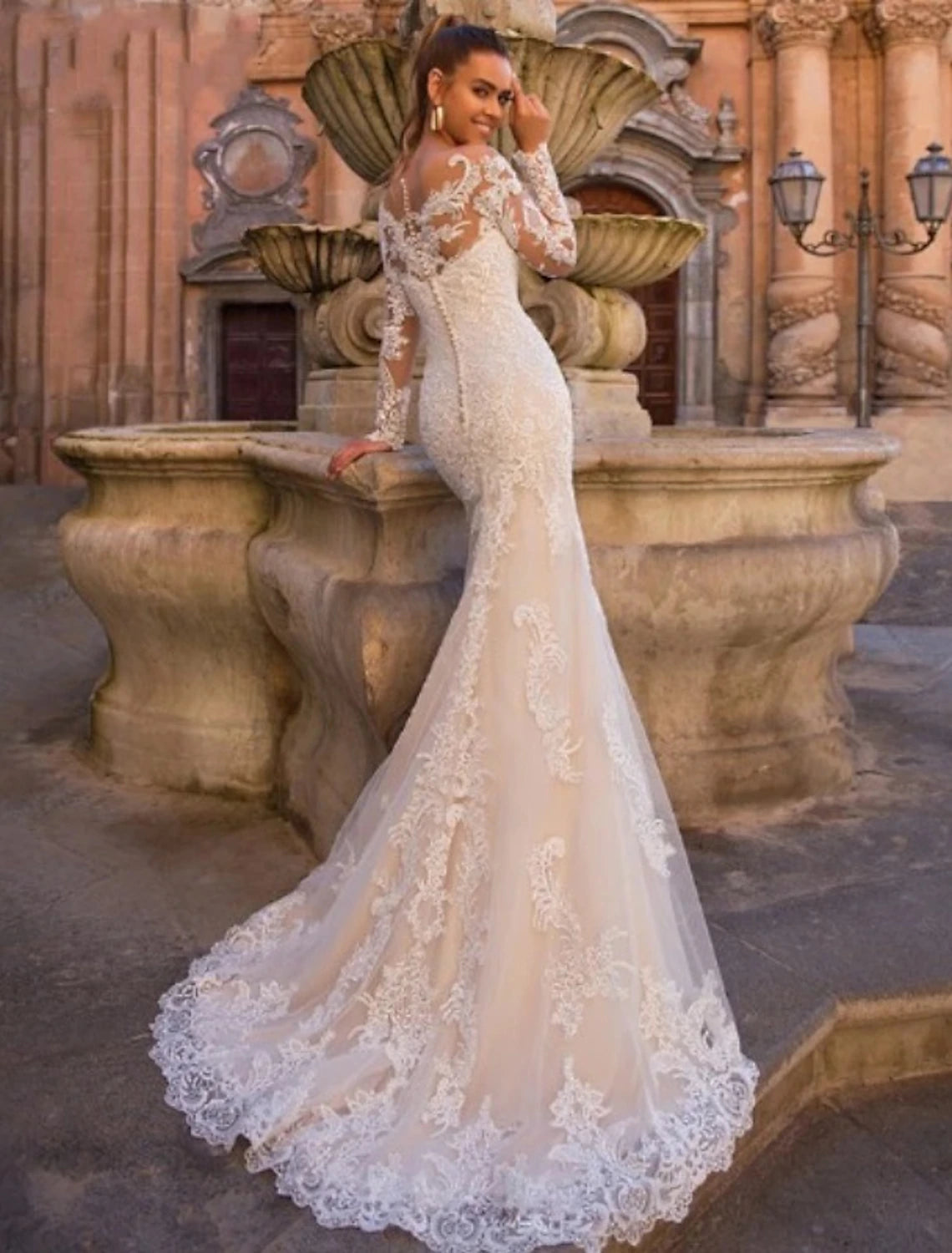 Vestidos de novia formales de compromiso, de dos piezas, escote corazón, manga larga, cola de corte, vestidos de novia de encaje con apliques - EE. UU. 2 / Reino Unido 6 / UE 32