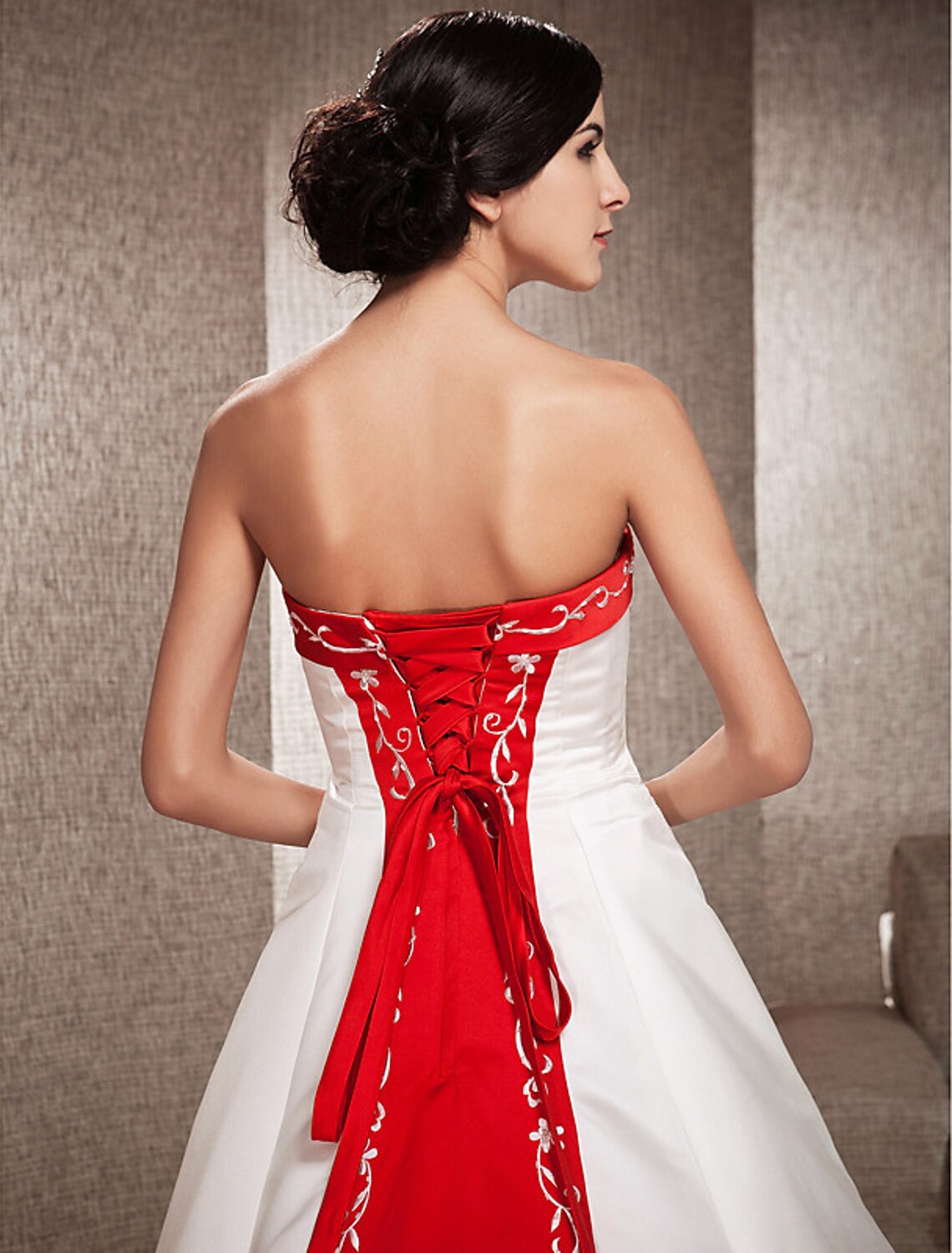 Vestidos de novia con espalda abierta, cola larga, vestido de baile, sin tirantes, satén, con apliques bordados - EE. UU. 2 / Reino Unido 6 / UE 32
