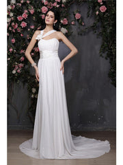 Vestido de novia largo de gasa, sin mangas, con escote halter, flores hechas a mano y pliegues