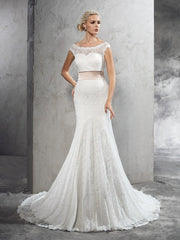 Vestidos de novia largos de encaje sin mangas con escote tubo/columna y escote transparente con faja/cinturón - EE. UU. 2 / Reino Unido 6 / UE 32