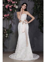 Vestidos de novia largos de encaje con corte tubo/columna, sin tirantes, sin mangas y con faja - EE. UU. 2 / Reino Unido 6 / UE 32