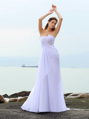 Vestidos de novia largos de gasa para playa, sin mangas, con escote en forma de corazón y pedrería