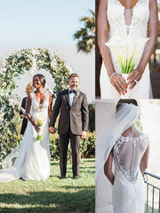 Vestidos de novia de tul, sin mangas, con escote en V y cola larga