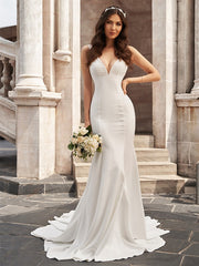 Vestido de novia de corte sirena/trompeta con escote en V, volantes, sin mangas y cola capilla - EE. UU. 2 / Reino Unido 6 / UE 32