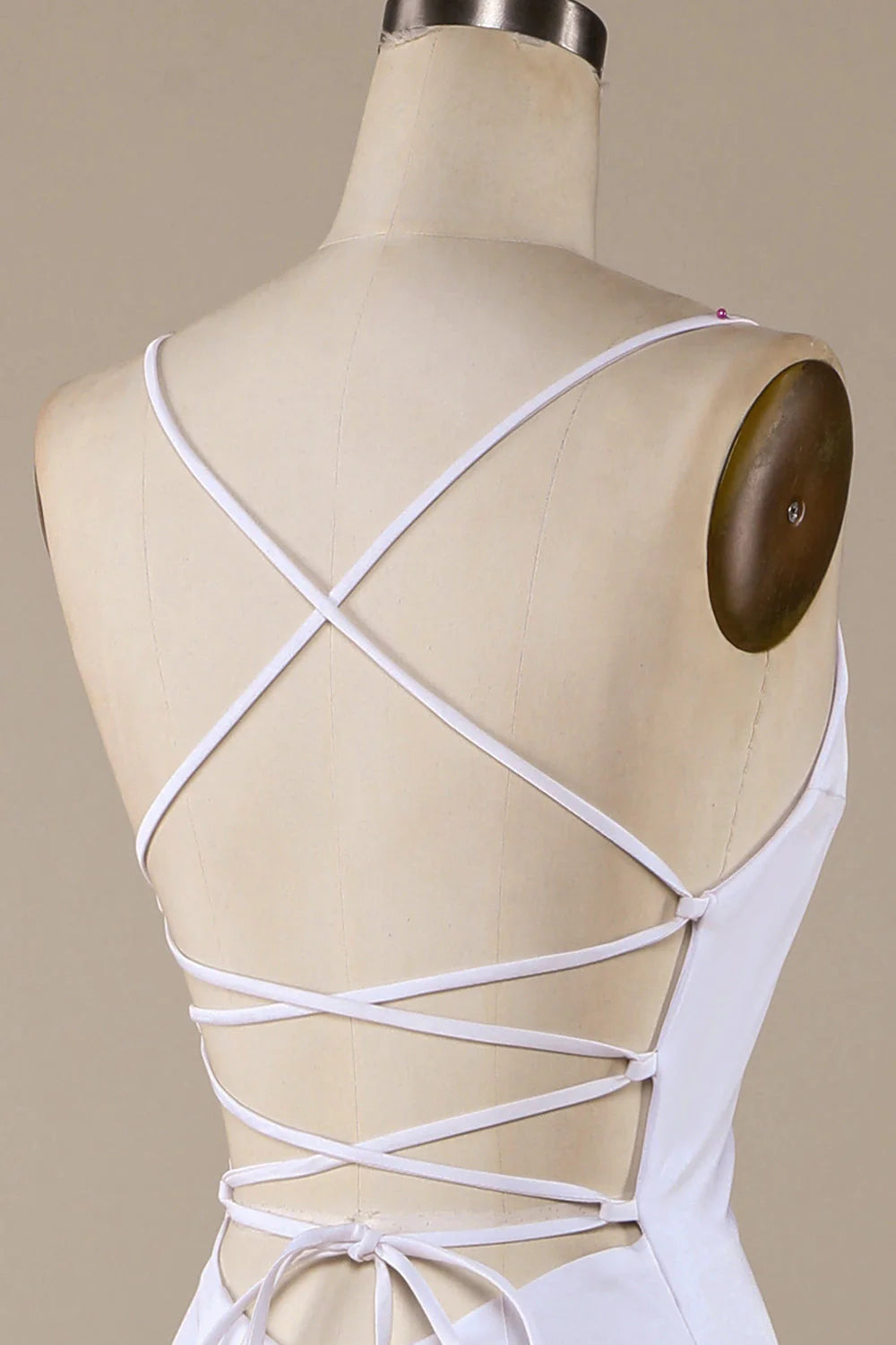 Vestido de novia blanco de sirena con cordones en la espalda y cola larga
