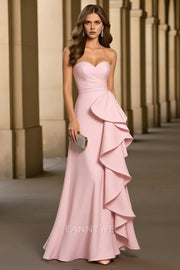 Strapless Ruffled Side Satin Mother of the Bride Dress. Occasions: Prom, black tie events, formal weddings, and upscale parties.
