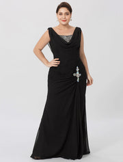 Sheath / Column Mother of the Bride Dress Classic & Timeless Elegant & Luxurious Plus Size Cowl Neck Floor Length Chiffon Sleeveless No with Criss Cross Beading
